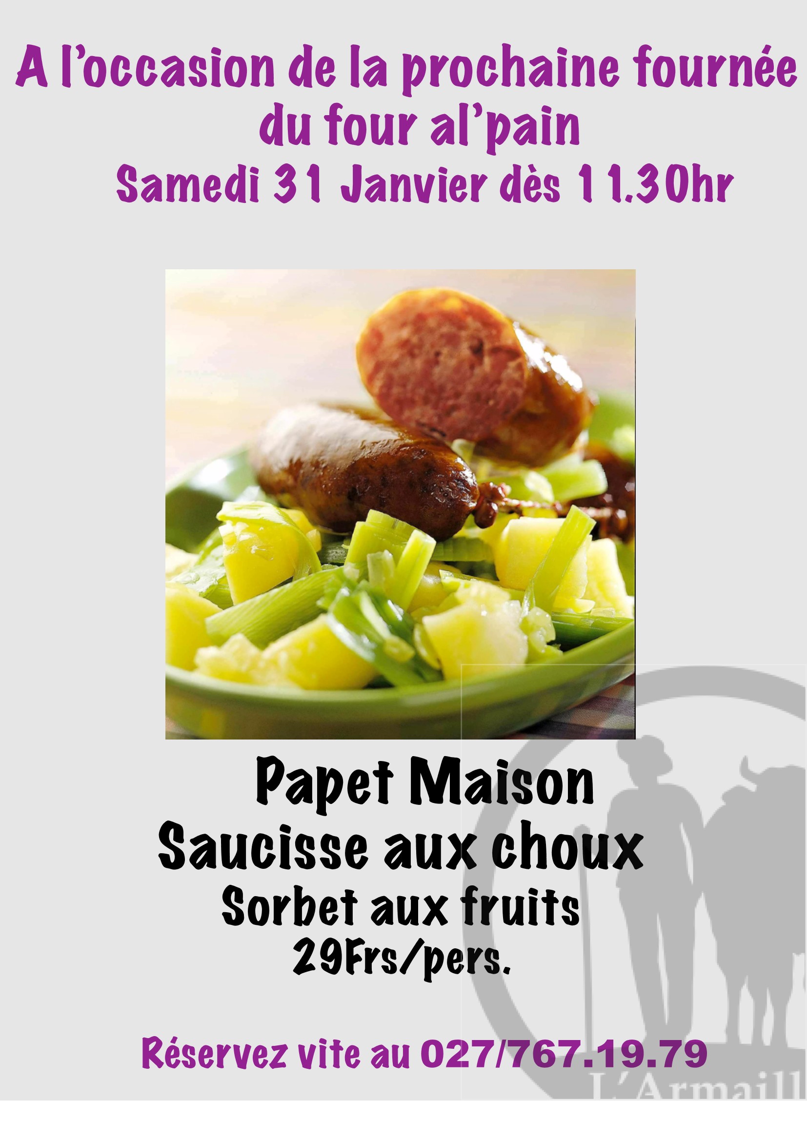 Consultez aussi régulièrement notre site Internet ou l’affichage sur la porte du four pour les éventuelles modifications de dates ou annulations de fournées.