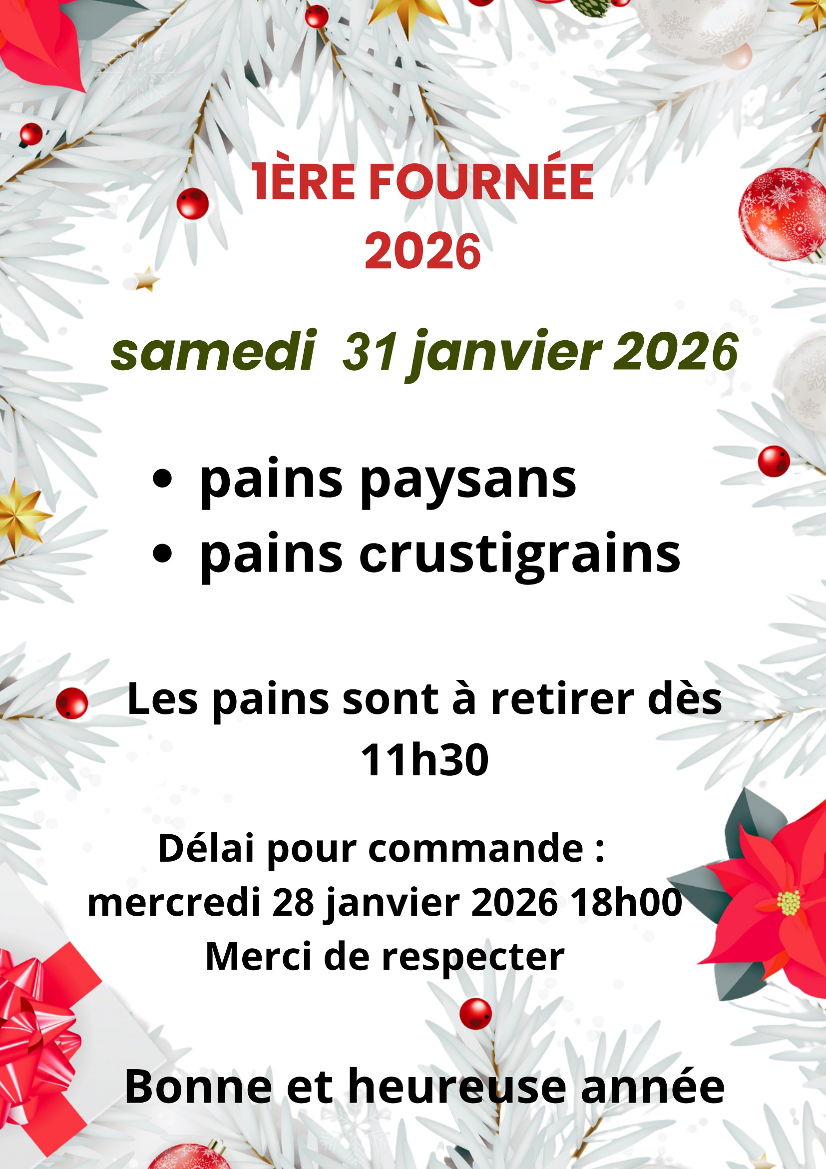 Pour la bonne marche des fournées: il y a lieu de commander son pain à l’avance.